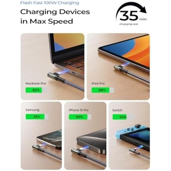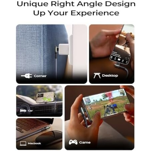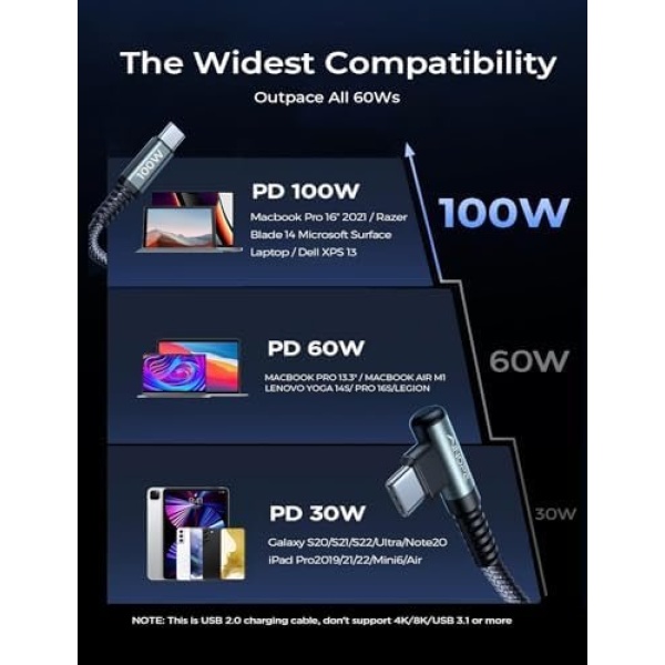 🔋”L” Connector Design, Never Bending & Breaking: This right angle usbc to usbc cable charge with an innovative 90 degrees “L” design. It’s more convenient and comfortable for playing games, watching videos, reading e-books while charging. A comfortable grip brings you an immersive operating experience, It completely solves the troubles of ordinary wires that are easy to block hand, unintentionally interrupted and the bending of the connector while using.