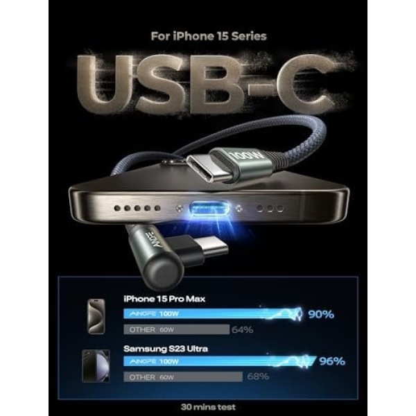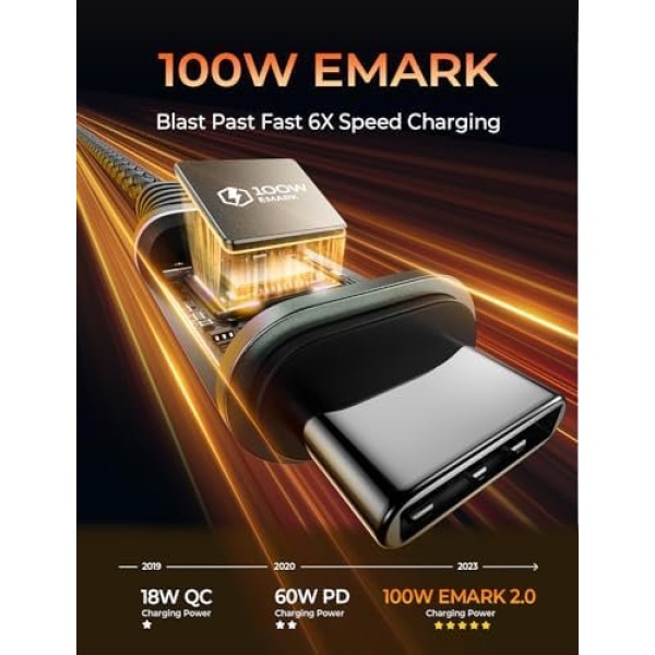 🔋6X Faster, 2023 Upgrade 100W E-Mark Chip: 100W super fast charging usb c to usb c Cable is built in the best power delivery certified E-Mark dual chip, which turbo charge supports USB PD fast charging and provides comprehensive protection to devices battery and adapters, keeping you in light-speed charging and safe. AINOPE is born for safe and fast charging. Please note: This 100W USB C cable data transfer needs to pass through the USB 2.0 USB C port.