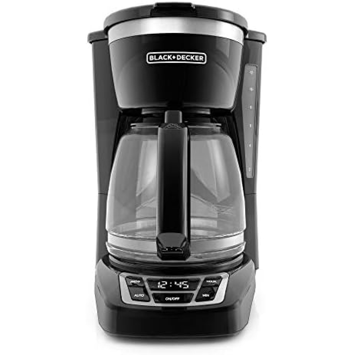 Brew your daily coffee fast with the BLACK+DECKER 12-Cup* Programmable Coffeemaker. QuickTouch Programming buttons make it easy to set the 24-hour auto brew feature and shave some time off of your morning routine. Other useful features include Sneak-A-Cup Technology, the 12-Cup* Duralife glass carafe, and a washable brew basket. Black+Decker and the Black+Decker logo are trademarks of The Black & Decker Corporation and are used under license. *Cup equals approximately 5 oz. (varies by brewing technique)