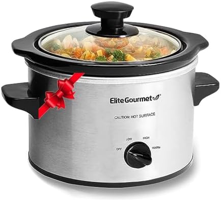 The Elite Gourmet 1.5 qt. Mini slow cooker is perfect for cooking and serving small one-pot meals and appetizers such as soups, stews, meatballs, dips, and sauces. It’s a great kickoff for a fondue party or where everyone prepares their favorite dip in their 1.5 qt. Mini slow cooker. This versatile small appliance can be a single person’s best companion as well as the All-Star at your next super bowl party. It features low and high temperature settings, A keep-warm setting allowing you to keep your meal hot and fresh before It’s served, and an attractive Stainless Steel finish. It includes a removable inner stoneware pot that’s easy to clean, with a tempered glass lid with metal rim for easy viewing of cooking cycle and cool-touch handles and knob for safe handling.
