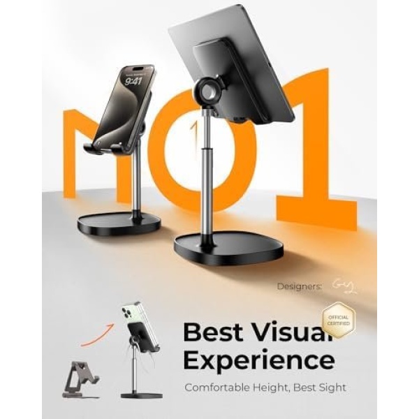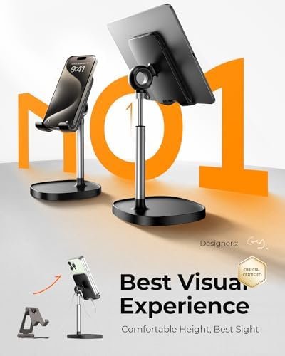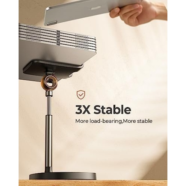 WEIGHTED ANTI-SLIP BASE: This cell phone stand for desk is equipped with a weighted base and an aluminum alloy rod. Therefore, this iPhone stand holder is stable enough to support all smartphones or small tablets, such as 2023 iPad Mini, iPhone 15 14 pro max 13 Pro/13 Mini/12/12 Pro/12 Pro Max/12 Mini/iPhone 11/11 Pro/Max/X/MAX/XR/8/8P, Samsung Galaxy S22, S22, Note 10/9/8/Plus, S10/S9/S8, Kindel, Switch, iPad Mini,iPad Air, etc.We recommend the most stable compatible device size is 4-10 inchs