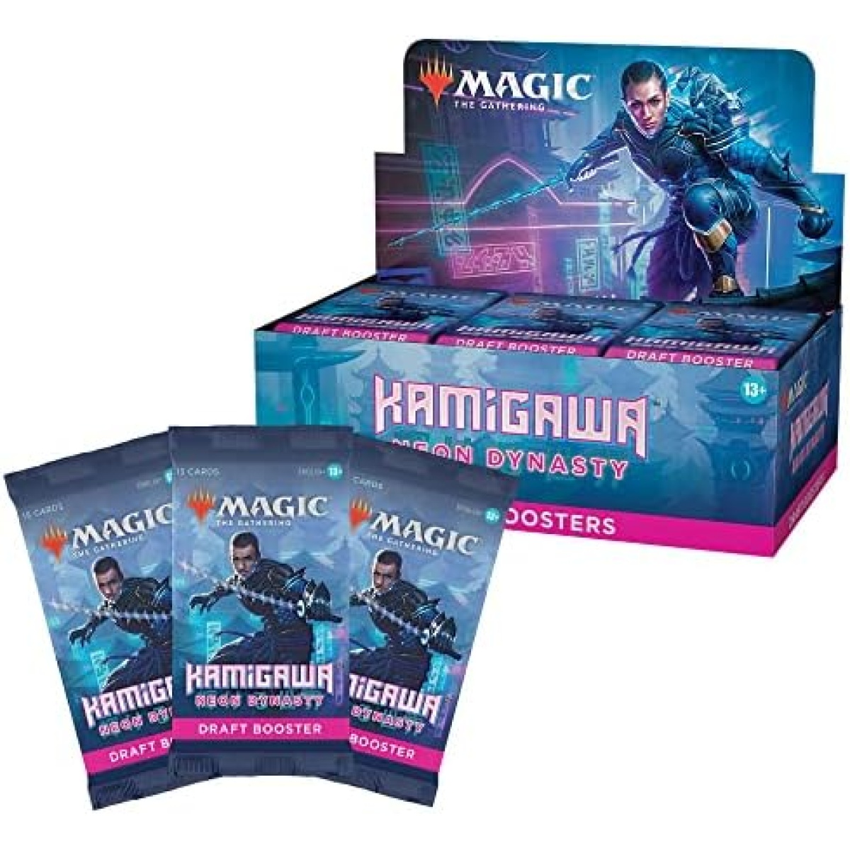 The Kamigawa: Neon Dynasty Draft Booster Box contains 36 Kamigawa: Neon Dynasty Draft Boosters (540 cards total). Each Draft Booster contains 15 Magic cards and 1 token, Helper card, or ad card, with a combination of 1 card of rarity Rare or higher, 3–4 Uncommons, 9–10 Common cards, and 1 Land card. A traditional foil card of any rarity replaces a Common in 33% of Kamigawa: Neon Dynasty Draft Boosters.