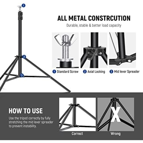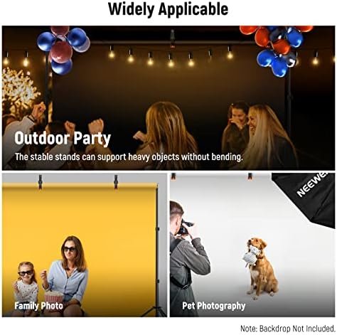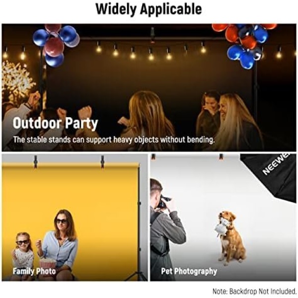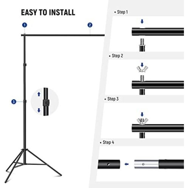 Adjustable Height & Width: With adjustable height (27.56”–7’ / 70cm–2.1m) and width (5’–10’ / 1.5-3m), the backdrop support system holds your backdrop in place and helps you create different backgrounds for photography work