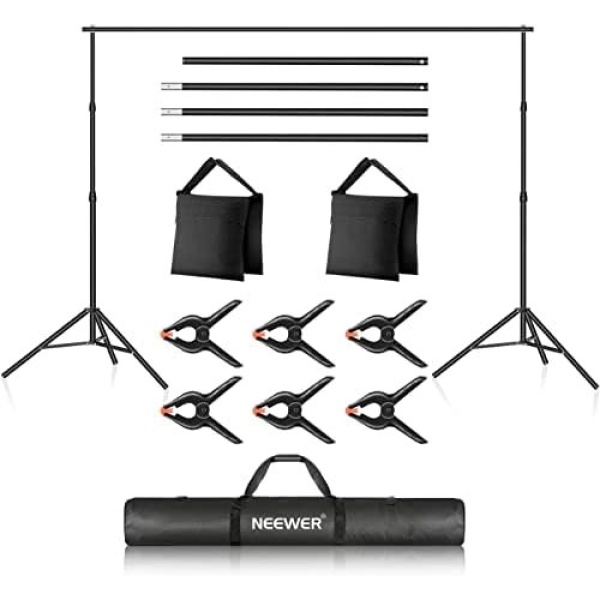 Stable Backdrop Stand: The aluminum alloy backdrop stand is durable and stable with load capacity up to 8.8lb/4kg. Two empty nylon sandbags are included for added stability