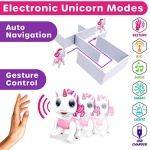 Interactive Unicorn Pet Toy Play Modes: Guide this walking unicorn with simple hand motions in Gesture Mode or watch your unicorn toy navigate a room all on its own in Adventure Mode; discover more ways to play with this smart robot unicorn toy for girls and boys