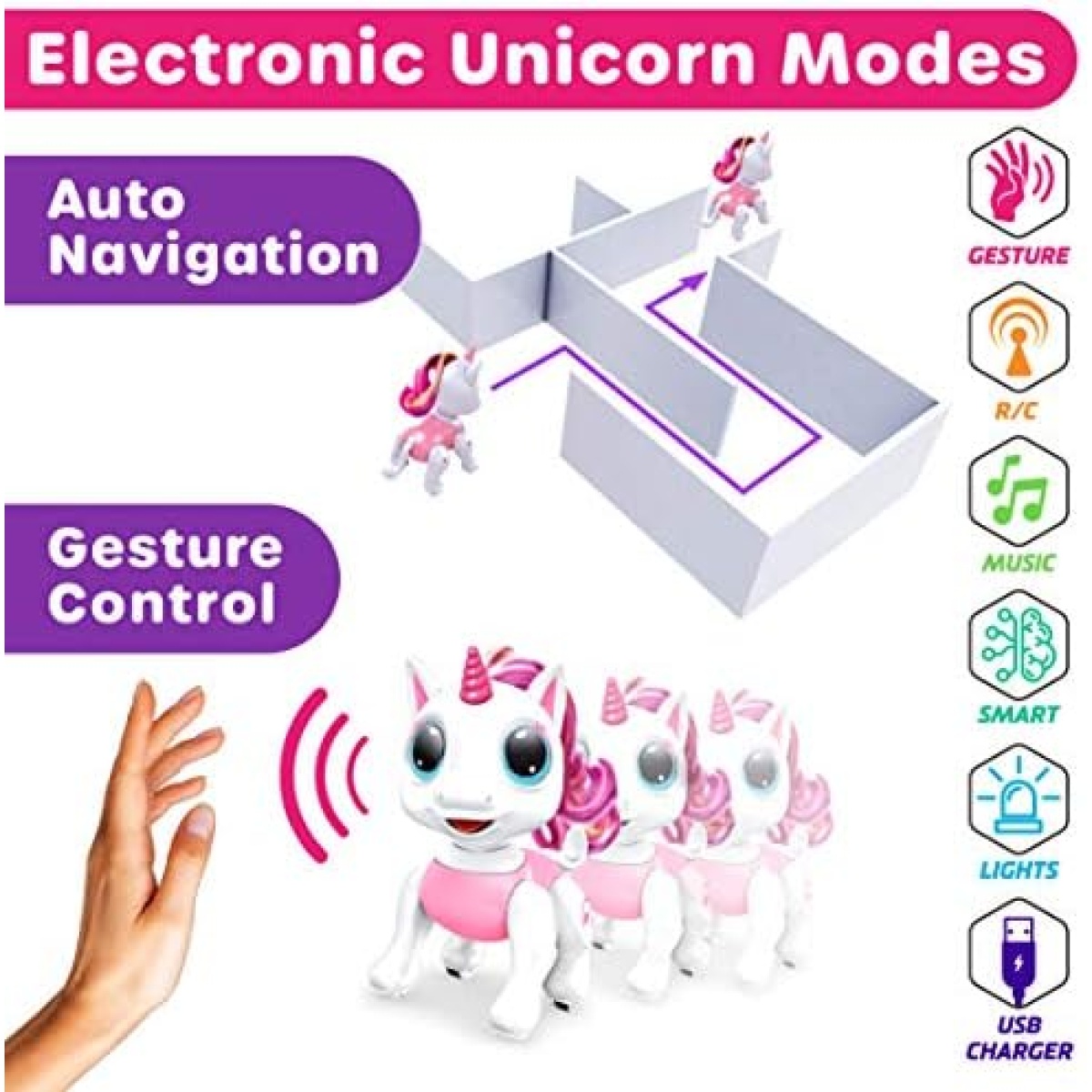 Remote Control Robot Unicorn Gifts for Girls and Boys: The Robot Pets unicorn toy is a fun remote control toy robot that neighs, sits, prances, dances to the beat, performs tricks, walks around the room, and more; a great companion toy for kids ages 3 and up