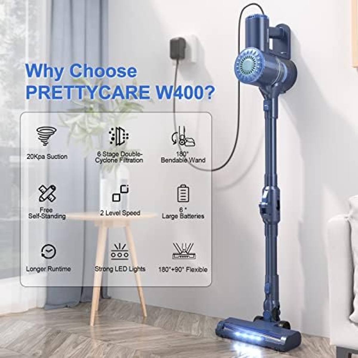 PRETTYCARE Cordless Vacuum Cleaner, 6 in 1 Lightweight Stick Vacuum