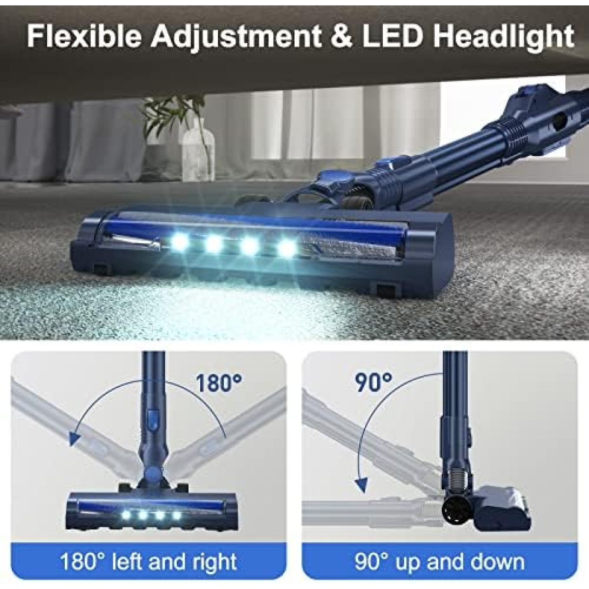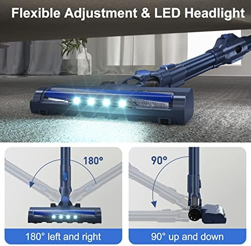 🏠【FLEXIBLE LED BRUSH & MULTIFUNCTIONAL USE】: Bagless vacuum cleaner’s 90+180° flexible stick brush with strong LED headlights can easily adjust the angle to clean particles and dust in dark places. Carpet vacuum cleaner with a 1.2L large-capacity dust container and One-Click Dust Release, this vacuum cleaner pet makes cleaning easier than ever. NOTE: after washing the dust cup and cotton filters, please make sure they are thoroughly dry before use again.